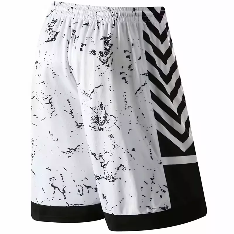 चांगली रचना प्रभावी स्पोर्ट्सवेअरची गुरुकिल्ली आहे. आमचे सबलिमेटेड बास्केटबॉल शॉर्ट्स अनेक नाविन्यपूर्ण वैशिष्ट्यांसह सुसज्ज आहेत जे वापरकर्त्याचा अनुभव वाढवतात. एक स्टँडआउट वैशिष्ट्य म्हणजे अंगभूत समायोज्य ड्रॉस्ट्रिंग बकल. हे वैशिष्ट्य हे सुनिश्चित करते की खेळाडूंना कोर्टवर त्यांच्या हालचालींनुसार सुरक्षितपणे फिट करता येईल. अंतर्गत कॉर्ड जलद समायोजनास अनुमती देते, जे विशेषतः वेगवान खेळांदरम्यान उपयुक्त असते जेव्हा खेळाडूंना पटकन बदलण्याची आवश्यकता असू शकते.